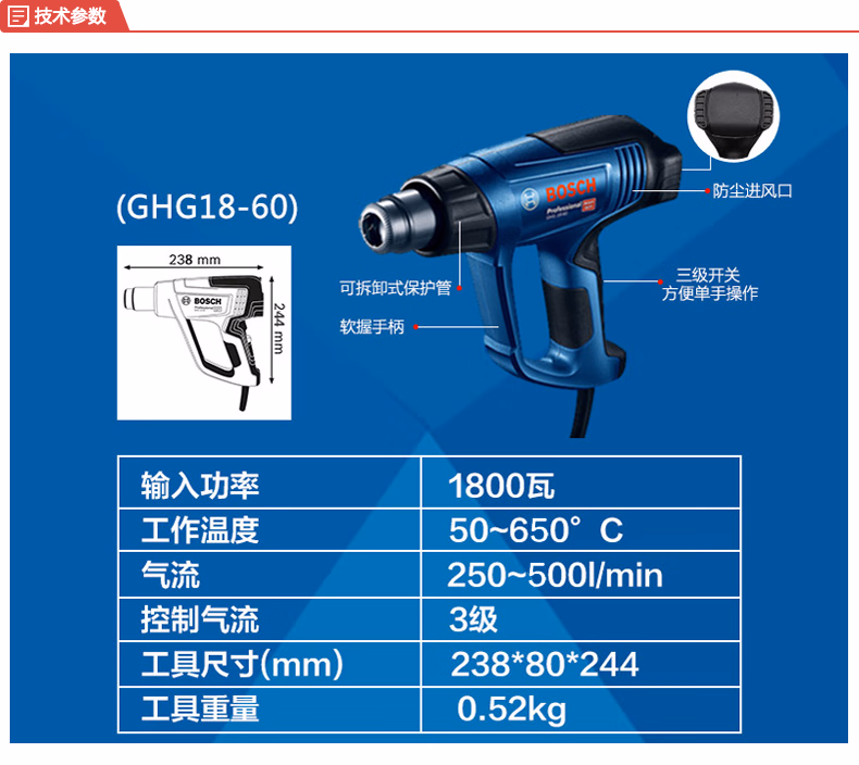 博世(BOSCH) 热风枪(GHG 600-3的升级款);GHG 18-60