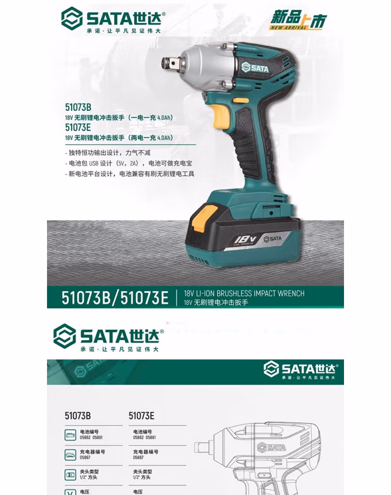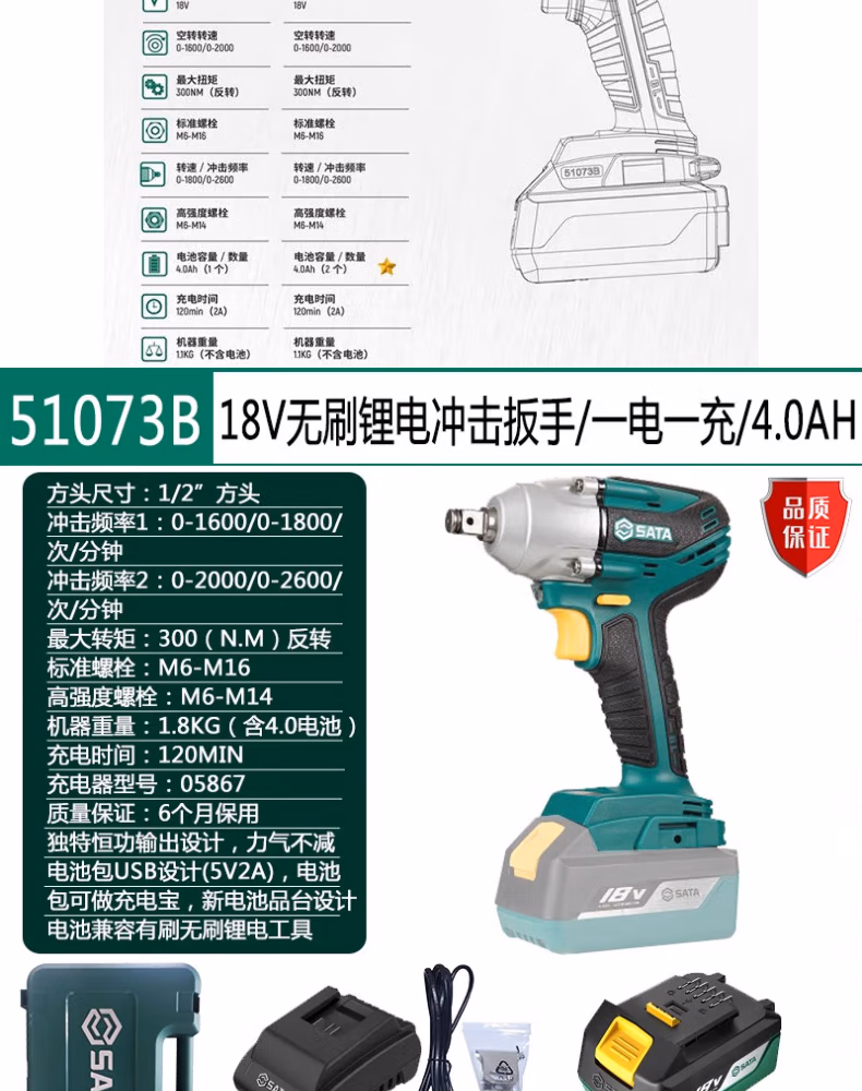 世达 18V无刷锂电冲击扳手(一电一充 4.0Ah ) 51073B