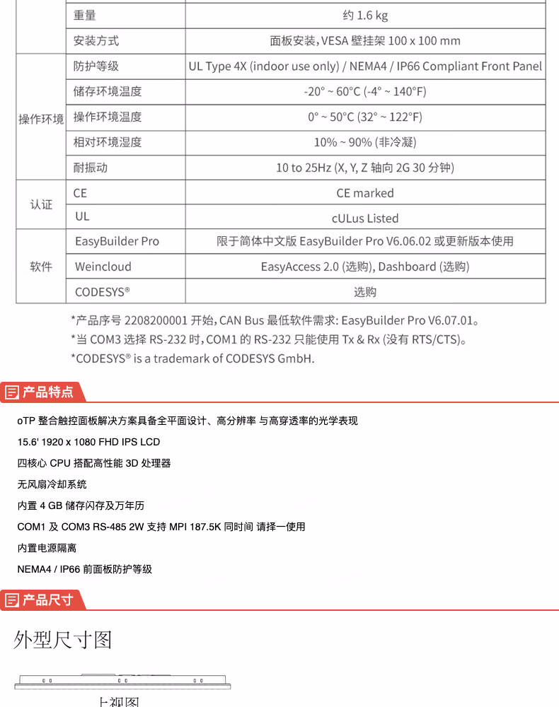 威纶通 人机界面 15.6寸;cMT3169X